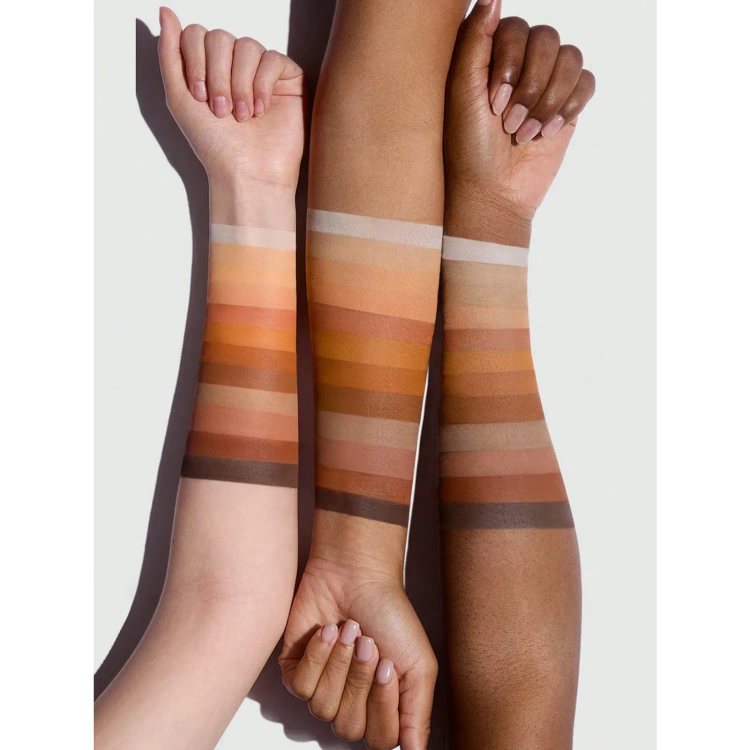 از کرمهای روشن و عسلی گرفته تا نارنجیهای خورشیدی، قهوهایهای شکلاتی و تُنهای کاراملی عمیق. هر رنگ دقیقاً جایی قرار گرفته که باید باشد؛ برای ساخت عمق، روشنکردن، گرمکردن آرایش و حتی ساخت یک اسموکی نارنجیِ جذاب.