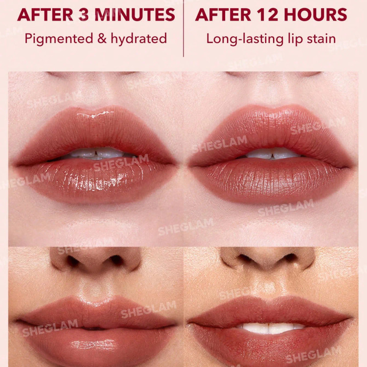 و بعد از ۱۲ ساعت، یک stain طبیعی و زیبا روی لب باقی میماند ، بدون پوستهپوسته، بدون ماسیدگی.