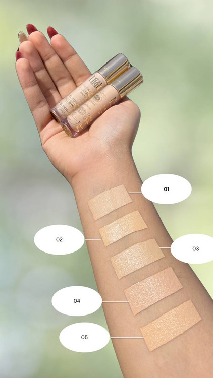ویژگی ها: دارای 5 رنگ بسیار زیبا - فول کاور ولی سبک -آبرسان - مات - دارای ویتامین C و E - دارای جذب بالا